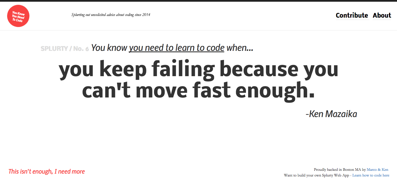 A database-powered quote generator with a mobile-first design, using the Ruby on Rails framework, HTML, and CSS. Uses Git and GitHub for version control, and launched on Heroku.
